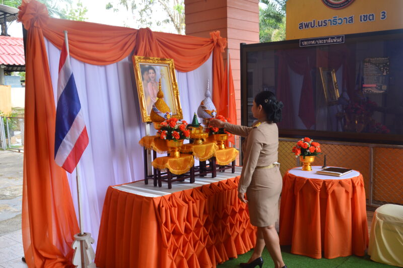 >>>>>วันที่ 26 ธันวาคม พ.ศ.2565 เวลา 9:00น. สำนักงานเขตพื้นที่การศึกษาประถมศึกษานราธิวาส เขต 3 จัดพิธีถวายพระพรชัยมงคล สมเด็จพระเจ้าลูกเธอ เจ้าฟ้าพัชรกิติยาภา นเรนทิราเทพยวดี กรมหลวงราชสาริณีสิริพัชร มหาวัชรราชธิดา โดยมีนางสุกิญญา วงษ์นาม ผอ.สพป.นราธิวาส เขต 3 ผู้อำนวยการกลุ่ม บุคลากร สพป.นราธิวาส เขต 3 และผู้บริหารโรงเรียนในสังกัด ร่วมพิธีถวายพระพรชัยมงคล สมเด็จพระเจ้าลูกเธอ เจ้าฟ้าพัชรกิติยาภา นเรนทิราเทพยวดี กรมหลวงราชสาริณีสิริพัชร มหาวัชรราชธิดา ให้ทรงหายจากพระอาการประชวรโดยเร็ว