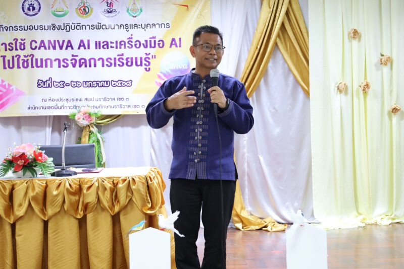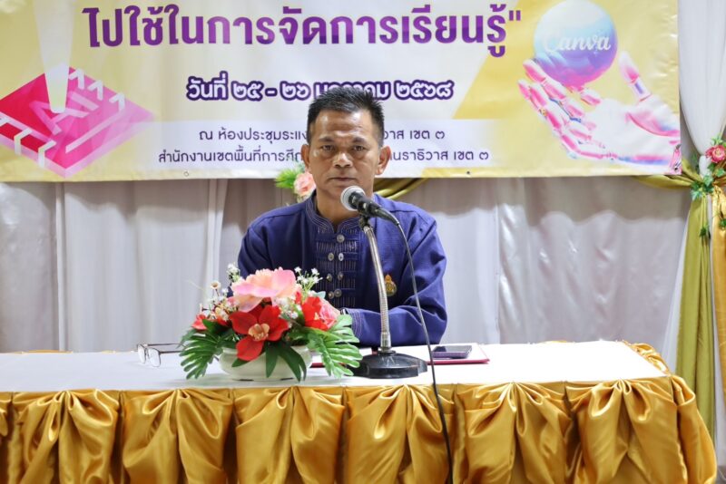 >>>>>วันที่ 25 มกราคม พ.ศ.2568 เวลา 8:30น. นายตอฮีรน หะยีเลาะแม ผอ.สพป.นราธิวาส เขต 3 เป็นประธานเปิดการอบรมเชิงปฏิบัติการพัฒนาครูและบุคลากรทางการศึกษา “การใช้ Canva AI และเครื่องมือ AI ไปใช้ในการจัดการเรียนรู้ โดยมี รอง ผอ.สพป.นราธิวาส เขต 3 ผุ้บริหารสถานศึกษา และคณะครูที่เข้าอบรมร่วมพิธีเปิด ทั้งนี้เพื่อการประยุกต์ใช้เทคโนโลยีปัญญาประดิษฐ์(AI) เพื่อลดภาระและเพิ่มประสิทธิภาพ การออกแบบการเรียนรู้และการวัดประเมินผล สำหรับครู มีครูทั้งสิ้น 5 โรงเรียนเข้ารับการอบรม ณ ห้องประชุมระแงะ สพป.นราธิวาส เขต 3