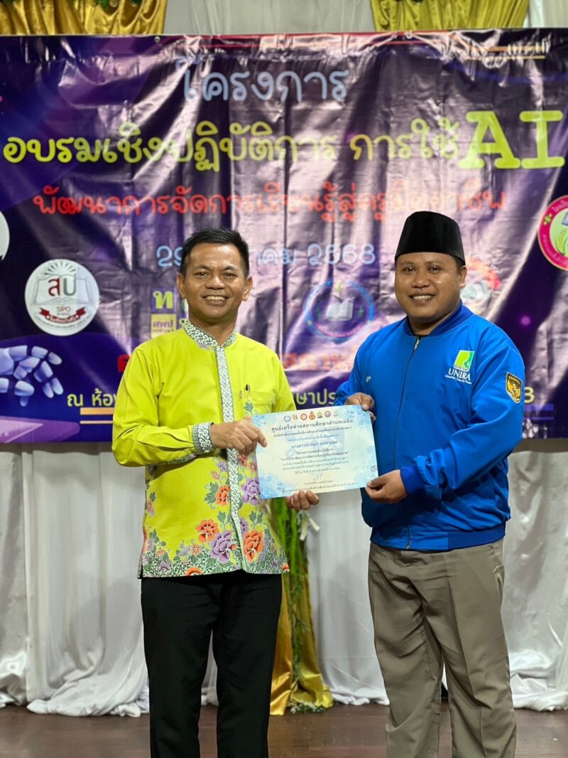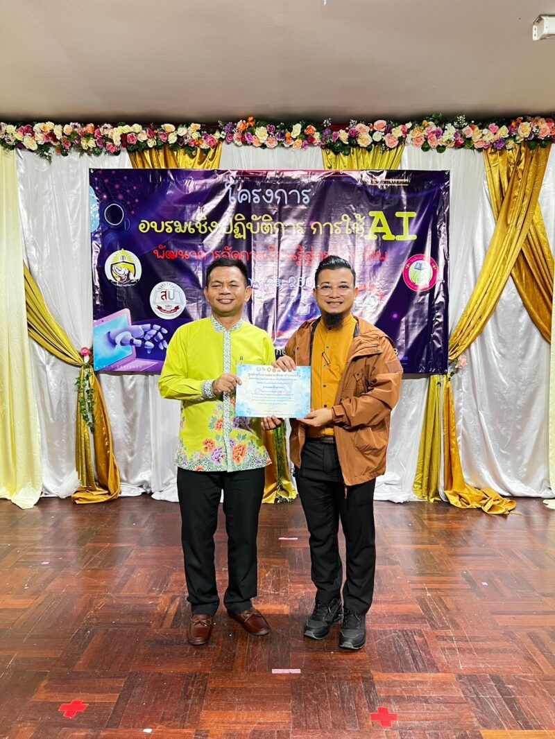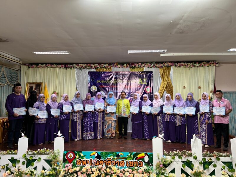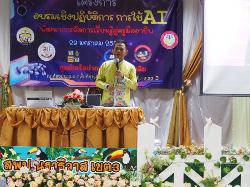 >>>>>วันที่ 29 มกราคม พ.ศ.2568 เวลา 9:00น. นายตอฮีรน หะยีเลาะแม ผอ.สพป.นราธิวาส เขต 3 เป็นประธานเปิดโครงการอบรมเชิงปฏิบติการ การใช้ AI พัฒนาการเรียนรู้สู่ครูมืออาชีพ ศูนย์เครือข่ายสถานศึกษาเฉลิม ผ่าน AI ในเวลา 16:00น. ได้พบปะผู้เข้ารับการอบรมและมอบเกียรติบัตรให้แก่ผู้เข้ารับอบรมในครั้งนี้ ทั้งนี้เพื่อลดภาระและเพิ่มประสิทธิภาพ การออกแบบการเรียนรู้และการวัดประเมินผล สำหรับครู ณ ห้องประชุมระแงะ สพป.นราธิวาส เขต 3