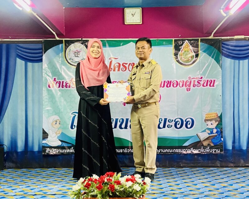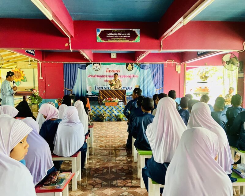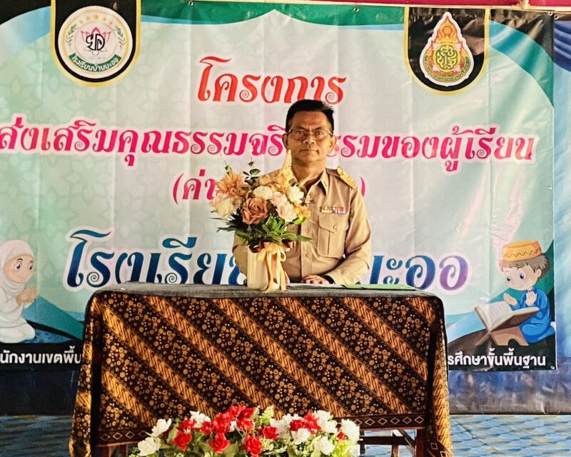 >>>>>วันที่ 24 กุมภาพันธ์ พ.ศ.2568 เวลา 10:30น. นายตอฮีรน หะยีเลาะแม ผอ.สพป.นราธิวาส เขต 3 พิธีเปิดโครงการส่งเสริมคุณธรรม จริยธรรมของผู้เรียน (ค่ายคุณธรรรม) และนักเรียนโรงเรียนบ้านยะอ มุ่งเน้นพัฒนานักเรียนให้เป็นผู้มีคุณธรรม จริยธรรม และดำรงชีวิตอย่างมีจิตสำนึกที่ดึงาม ปลูกฝังความเข้าใจที่ถูกต้องและเสริมสร้างความอดทนในการปฏิบัติศาสนกิจอย่างสม่ำเสมอ พัฒนาทักษะการอยู่ร่วมกันอย่างมีมนุษยสัมพัมพันธ์ที่ดี ทั้งในโรงเรียนและสังคม โดยมีกลุ่มเป้าหมายเป็น นักเรียนระดับชั้นประถมศึกษาปีที่ 1-6 โรงเรียนบ้านยะออ