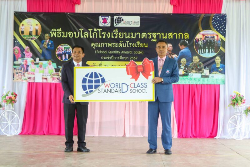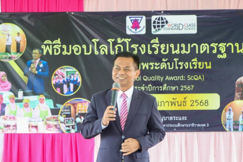 >>>>>วันที่ 25 กุมภาพันธ์ พ.ศ. 2568 เวลา 9:00น. นายตอฮีรน หะยีเลาะแม ผู้อำนวยการสำนักงานเขตพื้นที่การศึกษาประถมศึกษานราธิวาส เขต 3 ให้เกียรติเป็นประธานมอบโลโก้โรงเรียนมาตรฐานสากล (World-Class Standard School) ซึ่งเป็นโรงเรียนที่พัฒนาหลักสูตรและจัดการเรียนการสอนอย่างมีคุณภาพเทียบเคียงมาตรฐานสากล รวมทั้งมีการบริหารจัดการด้วยระบบคุณภาพ เพื่อให้ได้ผู้เรียนที่มีคุณภาพ คือเป็นผู้ที่มีความรู้ความสามารถและคุณลักษณะ (Learner Profile) เทียบเคียงมาตรฐานสากล (World class standard) และมีศักยภาพเป็นพลโลก ( World citizen) สอดคล้องกับเจตนารมณ์ของ หลักสูตรแกนกลางการศึกษาขั้นพื้นฐาน ณ โรงเรียนอนุบาลระแงะ อ.ระแงะ จ.นราธิวาส