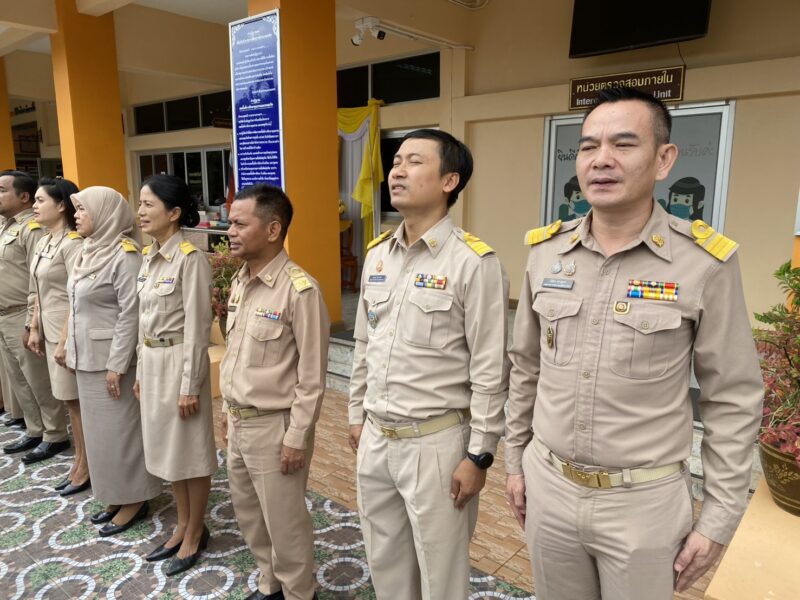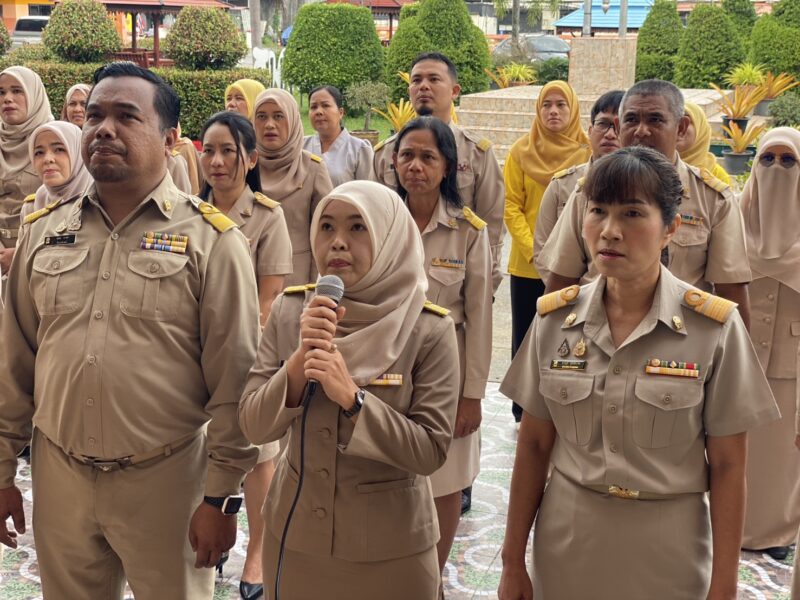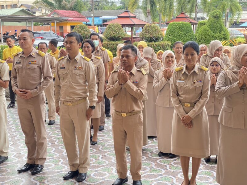 >>>>>วันที่ 10 มีนาคม พ.ศ.2568 เวลา 8:00น. นายตอฮีรน หะยีเลาะแม ผอ.สพป.นราธิวาส เขต 3 พร้อมด้วย น.ส.ผาสุขสันต์ ไหมทิพย์ นายนิติธร ชาวสูนย์ นายศุภวุฒิ สุภาชาติ รอง ผอ.สพป.นราธิวาส เขต 3 และบุคลากร สพป.นราธิวาส เขต 3 ร่วมเข้าแถวเคารพธงชาติ เพื่อแสดงความจงรักภักดี ต่อชาติ ศาสนา และพระมหากษัตริย์ พร้อมกล่าวดุอาอฺ และสวดมนต์ ก่อนกล่าวคำปฏิญาณตน เพื่อเป็นข้าราชการที่ดีและพลังของแผ่นดิน และคำปฏิญาณเขตพื้นที่การศึกษาคุณธรรมและเขตสุจริต ในการนี้นายตอฮีรน หะยีเลาะแม ผอ.สพป.นราธิวาส เขต 3 ได้พบปะ/แจ้งข้อราชการให้กับบุคลากรทราบ