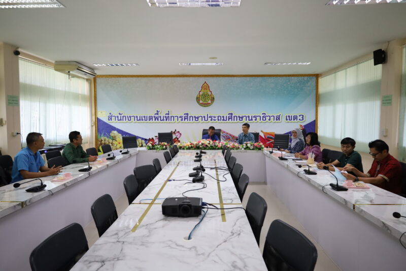 >>>>>วันที่ 14 พฤษภาคม พ.ศ.2568 เวลา 9:30น. นายตอฮีรน หะยีเลาะแม ผู้อำนวยการสำนักงานเขตพื้นที่การศึกษาประถมศึกษานราธิวาส เขต 3 เป็นประธานการประชุมการพิจารณาการเลื่อนเงินเดือนข้าราชการครูและบุคลากรทางการศึกษา ครั้งที่ 1/2568 (1 เมษายน 2568) โดยมีนายศุภวุฒิ สุภาชาติ รอง ผอ.สพป.นราธิวาส เขต 3 ผู้อำนวยการกลุ่มบริหารงานบุคคล ผู้แทนผู้บริหารสถานศึกษา และผู้แทนข้าราชการครูและบุคลากรทางการศึกษา เข้าร่วมประชุมเพื่อพิจารณารายละเอียดตามวาระการประชุม ณ ห้องประชุมจะแนะ สพป.นราธิวาส เขต 3