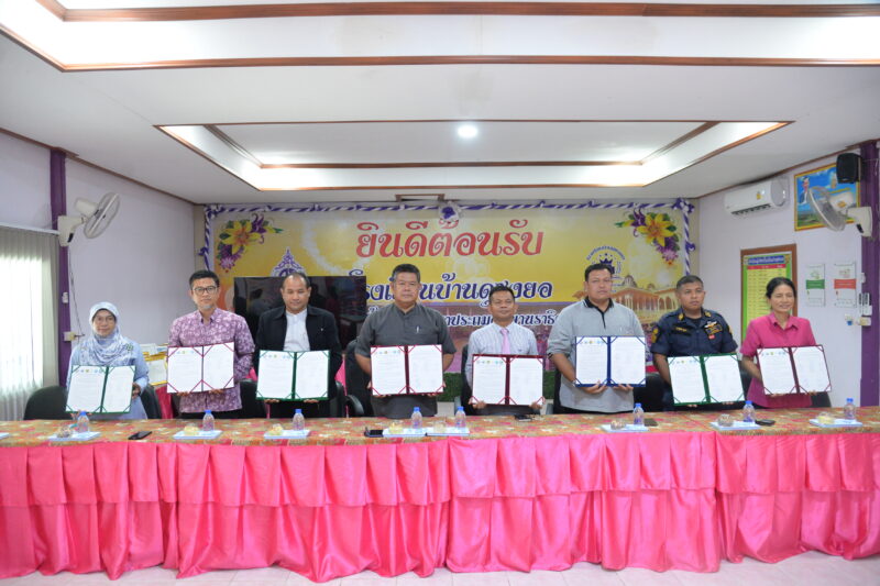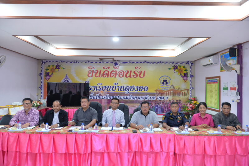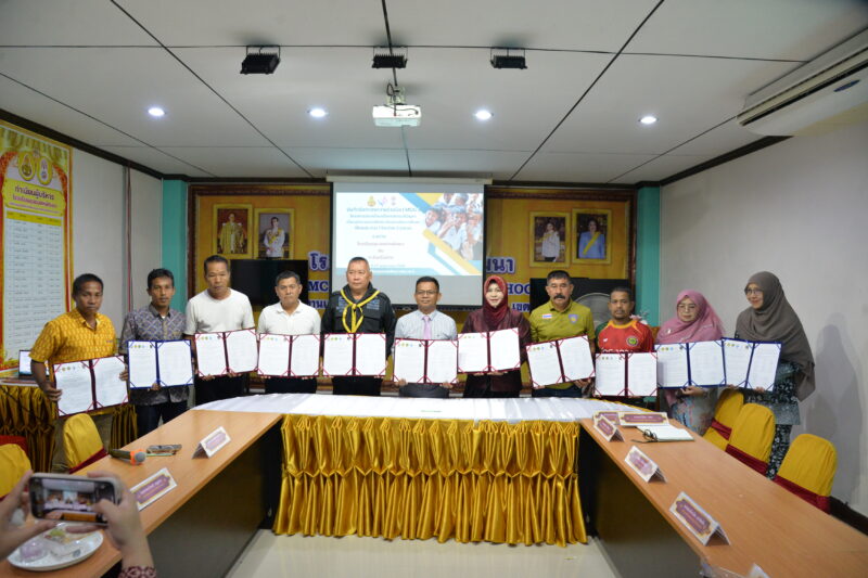>>>>>วันที่ 27 พฤษภาคม พ.ศ.2568 เวลา 9:30น. นายตอฮีรน หะยีเลาะแม ผอ.สพป.นราธิวาส เขต 3 เป็นประธานการทำบันทึกข้อตกลง (MOU) ว่าด้วยความร่วมมือและการมีส่วนร่วมของภาคีเครือข่าย เพื่อดำเนินการโครงการขับเคลื่อนโยบายการแก้ปัญหาเด็กนอกระบบการศึกษา ด้วยการจัดการศึกษาที่ยืดหยุ่นด้วย 1 โรงเรียน 3 รูปแบบ ระหว่าง รร.บ้านมะรือโบออกฯ รร.ราชพัฒนา รร.ชุมชนสหพัฒนา และ รร.บ้านดุซงยอ ศูนย์การส่งเสริมการเรียนรู้ระดับอำเภอ โรงพยาบาลส่งเสริมสุขภาพตำบล กำนัน และผู้ใหญ่บ้าน เพื่อป้องกันปัญหาเด็กหลุดจากระบบการศึกษา ที่ได้มาร่วมกันเป็นพลังสำคัญในการดูแลช่วยเหลือเด็กนักเรียนทุกคนกลับเข้าสู่ระบบการศึกษา จัดการเรียนรู้ที่ยืดหยุ่น สอดคล้องกับเงื่อนไขชีวิตของเด็กทุกคน พร้อมติดตามตามนโยบาย “เรียนดี มีความสุข”