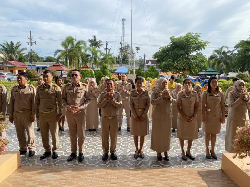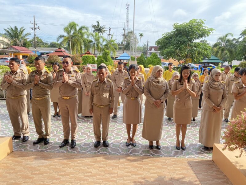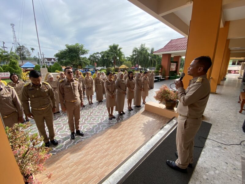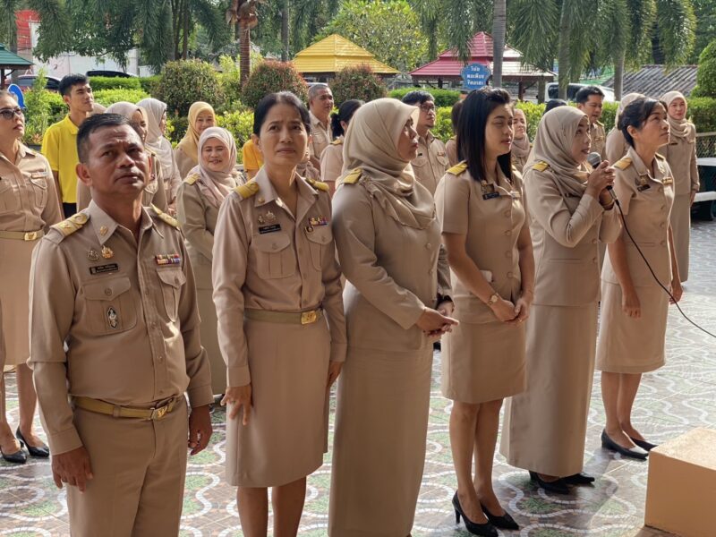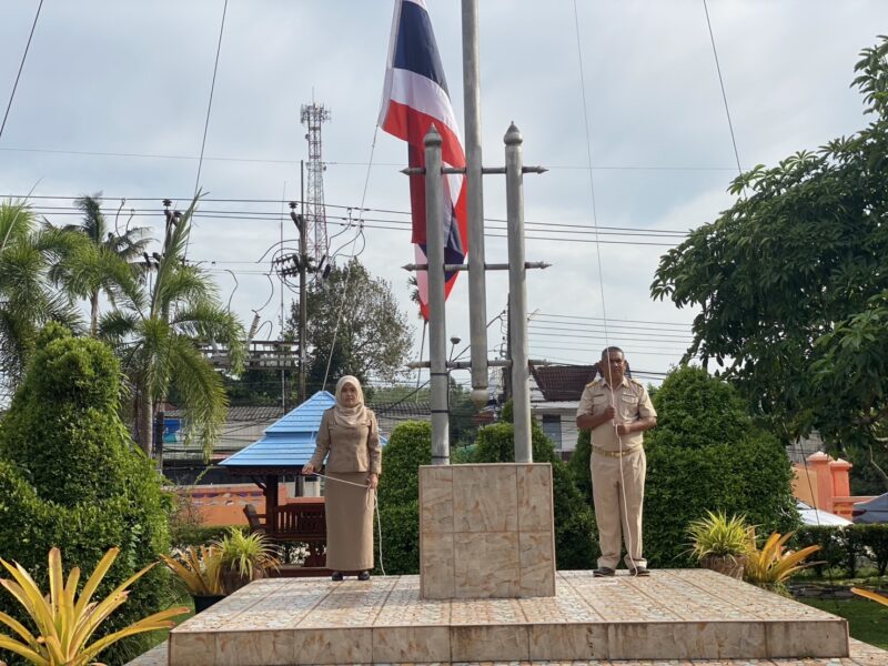 >>>>>วันที่ 23 มิถุนายน พ.ศ.2568 เวลา 8:00น. นายตอฮีรน หะยีเลาะแม ผอ.สพป.นราธิวาส เขต 3 พร้อมด้วยน.ส.ผาสุขสันต์ ไหมทิพย์ นายไพฑูรย์ ศรีวะสุทธิ์ นายนิติธร ชาวสูนย์ นายศุภวุฒิ สุภาชาติ รอง ผอ.สพป.นราธิวาส เขต 3 ผู้อำนวยการกลุ่ม และบุคลากร สพป.นราธิวาส เขต 3 ร่วมเข้าแถวเคารพธงชาติ เพื่อแสดงความจงรักภักดี ต่อชาติ ศาสนา และพระมหากษัตริย์ พร้อมกล่าวดุอาอฺ และสวดมนต์ ก่อนกล่าวคำปฏิญาณตน เพื่อเป็นข้าราชการที่ดีและพลังของแผ่นดิน และคำปฏิญาณเขตพื้นที่การศึกษาคุณธรรมและเขตสุจริต ในการนี้ นายตอฮีรน หะยีเลาะแม ผอ.สพป.นราธิวาส เขต 3 ได้กล่าวพบปะ และแจ้งข้าราชการให้บุคลากรทราบ