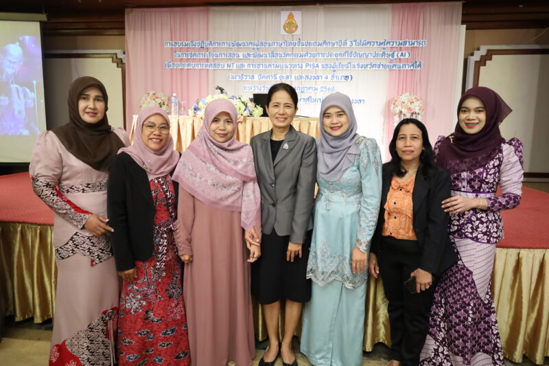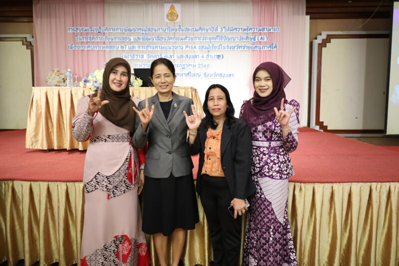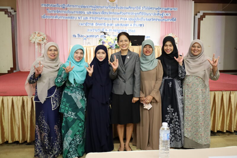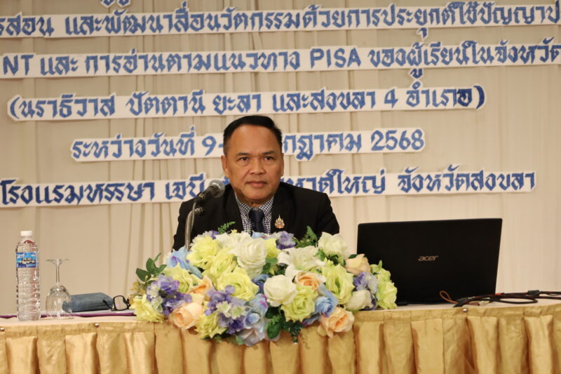 >>>>>>วันที่ 9 กรกฎาคม พ.ศ.2568 เวลา 9:00น. นายตอฮีรน หะยีเลาะแม ผู้อำนวยการสำนักงานเขตพื้นที่การศึกษาประถมศึกษานราธิวาส เขต 3 มอบหมายให้ น.ส.ผาสุขสันต์ ไหมทิพย์ รอง ผอ.สพป.นราธิวาส เขต 3 ร่วมเป็นเกียรติในพิธีเปิดการอบรมเชิงปฏิบัติการการพัฒนาครูผู้สอนภาษาไทยระดับชั้นประถมศึกษาปีที่ 3 ในพื้นที่จังหวัดชายแดนภาคใต้ ประกอบด้วย จังหวัดนราธิวาส ปัตตานี ยะลา และสงขลา (เฉพาะ 4 อำเภอ) เพื่อยกระดับคุณภาพผู้เรียนให้มีสมรรถนะด้านภาษาไทยตามแนวทางการทดสอบ NT และ PISA อย่างมีประสิทธิภาพ ทำให้ครูเกิดทักษะใช้ความรู้ความสามารถจัดการเรียนการสอน และพัฒนาสื่อนวัตกรรมด้วยการประยุกต์ใช้เทคโนโลยีปัญญาประดิษฐ์ (Artificial Intelligence: AI) ระหว่างวันที่ 9-11 กรกฎาคม 2568 ณ โรงแรมหรรษา เจบี หาดใหญ่