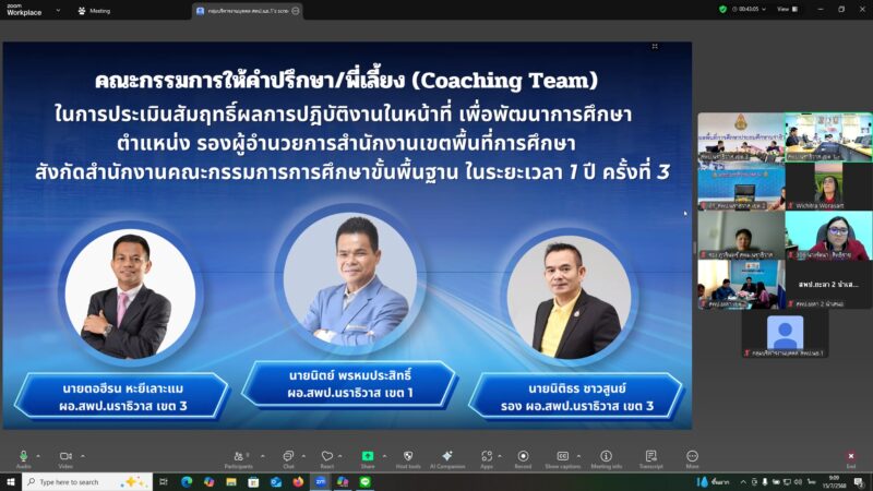 >>>>>>วันที่ 15 กรกฎาคม พ.ศ.2568 เวลา 9:00น. นายตอฮีรน หะยีเลาะแม ผอ.สพป.นราธิวาส เขต 3 ร่วมประชุมกรรมการ Coaching Teams พี่เลี้ยงในการให้คำปรึกษา/แนะนำ การประเมินสัมฤทธิผลการปฏิบัฏิบัติงานในหน้าที่ เพื่อพัฒนาการศึกษา ตำแหน่งรองผู้อำนวยการสำนักงานเขตพื้นที่ สังกัด สพฐ. รอบ 1 ปี ครั้งที่ 3 ให้แก่ รอง ผอ.สพท. ในเขตพิเศษเฉพาะกิจจังหวัดชายแดนภาคใต้ จำนวน 11 ท่าน โดยมีนายนิตย์ พรหมประสิทธิ์ ผอ.สพป.นราธิวาส เขต 1 เป็นประธานคณะกรรมการ Coaching และ นายนิติธร ชาวสูนย์ รอง ผอ.สพป.นราธิวาส เขต 3 เป็นคณะกรรมการ โดย สพป.นราธิวาส เขต 3 มี น.ส.ผาสุขสันต์ ไหมทิพย์ นายไพฑูรย์ ศรีวะสุทธิ์ และนายศุภวุฒิ สุภาชาติ เข้ารับการ Coaching ณ ห้องประชุมบานบุรี สพป.นราธิวาส เขต 1