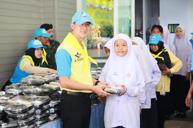 ในการนี้ว่าที่ร้อยตรี ตระกูล โทธรรม ผู้ว่าราชการจังหวัดนราธิวาส ประธานในพิธี ได้กล่าวสำนึกในพระมหากรุณาธิคุณ เพื่อแสดงออกถึงความจงรักภักดี และประกอบพิธีรับมอบถุงพระราชทาน หน้าพระบรมฉายาลักษณ์พระบาทสมเด็จพระเจ้าอยู่หัว เพื่อมอบแก่กลุ่มเปราะบางในพื้นที่หมู่บ้านบริวารรอบพระตำหนักทักษิณราชนิเวศน์ จำนวน 71 ราย