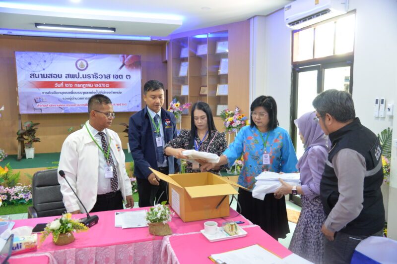>>>>>>วันที่ 26 กรกฎาคม พ.ศ.2568 เวลา 7:30น. นายตอฮีรน หะยีเลาะแม ผู้อำนวยการสำนักงานเขตพื้นที่การศึกษาประถมศึกษานราธิวาส เขต 3 ประชุมชี้แจงแนวทางการปฏิบัติหน้าที่คณะกรรมการคุมสอบ เพื่อบรรจุแต่งตั้งเป็นข้าราชการครูและบุคลากรทางการศึกษา ตำแหน่งรองผู้อำนวยการสถานศึกษา โดยมีนายศุภวุฒิ สุภาชาติ รอง ผอ.สพป.นราธิวาส เขต 3 คณะจาก ปปช.จังหวดนราธิวาส เจ้าหน้าที่จากมหาวิทยาลัยราชภัฏสวนดุสิต และคณะกรรมการคุมสอบ ร่วมประชุม เพื่อรับทราบแนวทางปฏิบัติ ให้มีความถูกต้อง โปร่งใส และเป็นไปตามหลักเกณฑ์และวิธีที่ ก.ค.ศ. กำหนด ณ ห้องประชุมระแงะ สพป.นราธิวาส เขต 3