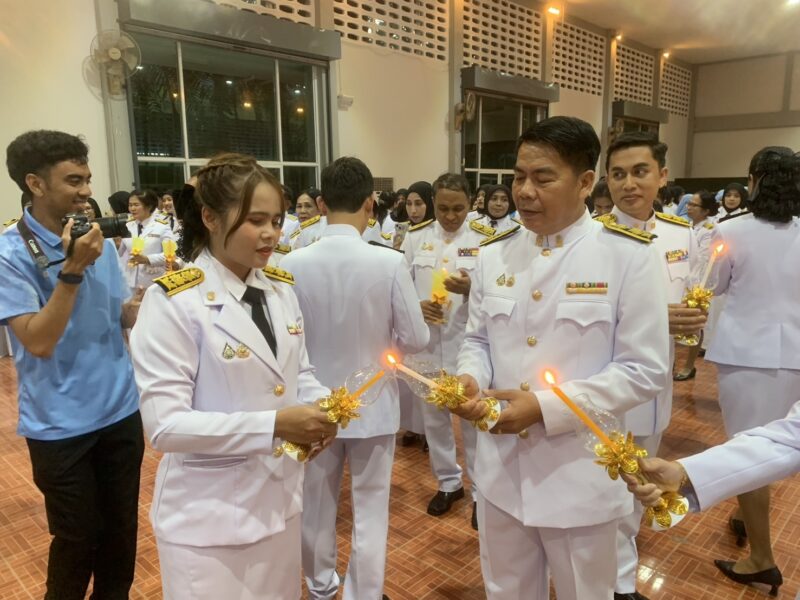 >>>>>>วันที่ 12 สิงหาคม พ.ศ.2568 เวลา 18:00น. นายตอฮีรน หะยีเลาะแม ผู้อำนวยการสำนักงานเขตพื้นที่การศึกษาประถมศึกษานราธิวาส เขต 3 มอบหมายให้นายไพฑูรย์ ศรีวะสุทธิ์ รอง ผอ.สพป.นราธิวาส เขต 3 รักษาราชการแทน ผอ.สพป.นราธิวาส เขต 3 พร้อมด้วยผู้บริหารสถานศึกษา คณะครู และบุคลากร สพป.นราธิวาส เขต 3 พิธีวางพานพุ่ม จุดเทียนชัยถวายพระพรชัยมงคล เนื่องในโอกาสวันคล้ายวันพระราชสมภพของสมเด็จพระนางเจ้าสิริกิติ์ พระบรมราชินีนาถ พระบรมราชชนนีพันปีหลวง โดยมีนายวิมุตติ อำนักมณี นายอำเภอระแงะ เป็นประธาน ณ หอประชุมที่ว่าการอำเภอระแงะ จ.นราธิวาส