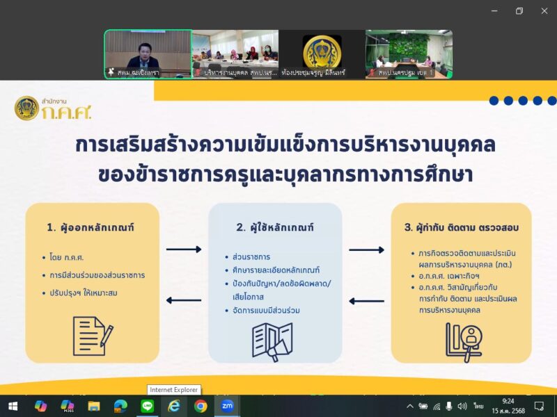>>>>>>วันที่ 15 สิงหาคม พ.ศ.2568 เวลา 9:30น. นายตอฮีรน หะยีเลาะแม ผู้อำนวยการสำนักงานเขตพื้นที่การศึกษาประถมศึกษานราธิวาส เขต 3 มอบหมายให้นายไพฑูรย์ ศรีวะสุทธิ์ รอง ผอ.สพป.นราธิวาส เขต 3 รักษาราชการแทน ผอ.สพป.นราธิวาส เขต 3 ร่วมประชุมทางไกล ผ่านระบบ Video Conference เรื่อง การเสริมสร้างความเข้มแข็งการบริหารงานบุคคลของข้าราชการครูและบุคลากรทางการศึกษา โดยมีนายนิติธร ชาวสูนย์ รอง ผอ.สพป.นราธิวาส เขต 3 ผู้อำนวยการกลุ่มบริหารงานบุคคล และเจ้าหน้าที่ เข้าร่วมประชุม ณ ห้องประชุมจะแนะ สพป.นราธิวาส เขต 3