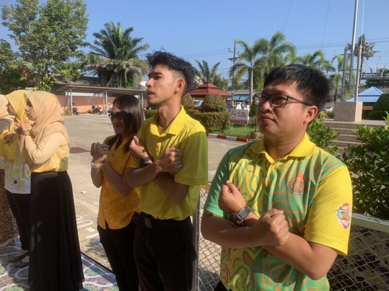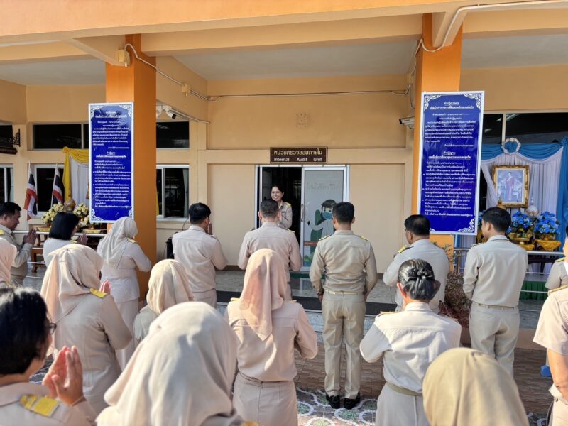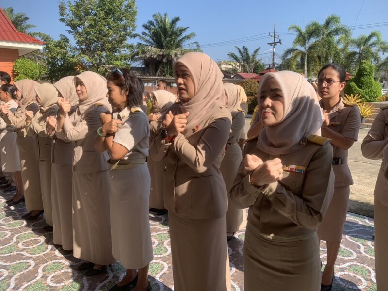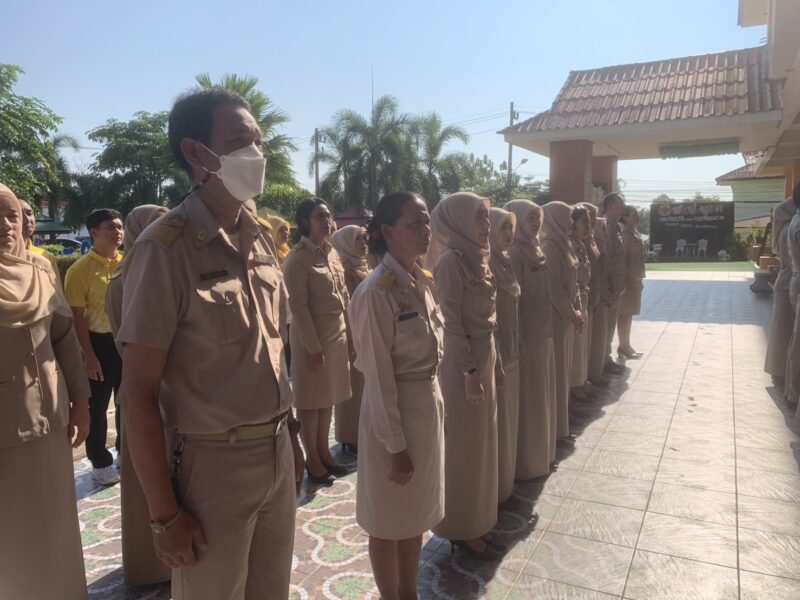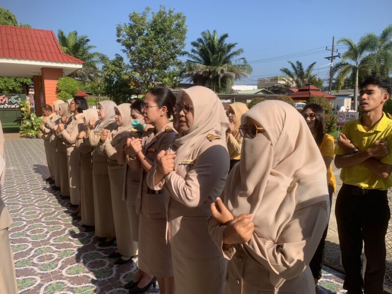 >>>>>>วันที่ 18 สิงหาคม พ.ศ.2568 เวลา 8:00น. นายตอฮีรน หะยีเลาะแม ผู้อำนวยการสำนักงานเขตพื้นที่การศึกษาประถมศึกษานราธิวาส เขต 3 มอบหมายให้ น.ส.ผาสุขสันต์ ไหมทิพย์ นายไพฑูรย์ ศรีวะสุทธิ์ นายนิติธร ชาวสูนย์ นายศุภวุฒิ สุภาชาติ รอง ผอ.สพป.นราธิวาส เขต 3 ผู้อำนวยการกลุ่ม และบุคลากร สพป.นราธิวาส เขต 3 ร่วมเข้าแถวเคารพธงชาติ เพื่อแสดงความจงรักภักดี ต่อชาติ ศาสนา และพระมหากษัตริย์ พร้อมกล่าวดุอาอฺ และสวดมนต์ ก่อนกล่าวคำปฏิญาณตน เพื่อเป็นข้าราชการที่ดีและพลังของแผ่นดิน และคำปฏิญาณเขตพื้นที่การศึกษาคุณธรรมและเขตสุจริต ในการนี้ รอง.ผอ.สพป.นราธิวาส เขต 3 ได้กล่าวพบปะ และแจ้งข้าราชการให้บุคลากรทราบ
