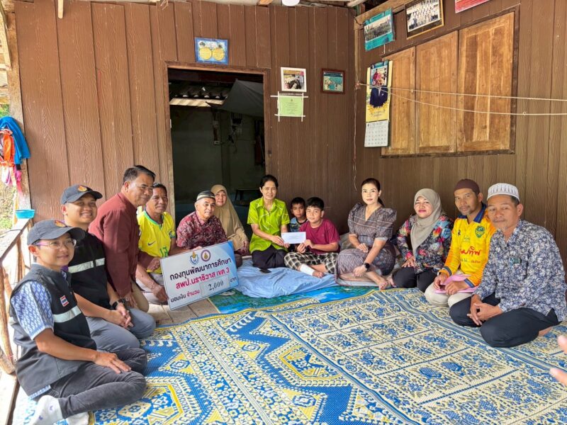 >>>>>>วันที่ 12 กันยายน พ.ศ.2568 เวลา 09:00น. นายตอฮีรน หะยีเลาะแม ผู้อำนวยการสำนักงานเขตพื้นที่การศึกษาประถมศึกษานราธิวาส เขต 3 มอบหมายให้ น.ส.ผาสุขสันต์ ไหมทิพย์ รอง ผอ.สพป.นราธิวาส เขต 3 รักษาราชการแทน ผอ.สพป.นราธิวาส เขต 3 และคณะศูนย์บริหารความสุขและความปลอดภัย สพป.นราธิวาส เขต 3 ลงพื้นที่เยี่ยมให้กำลังใจนักเรียน โรงเรียนบ้านจะแนะ ที่ประสบอุบัติเหตุ และครูโรงเรียนบ้านยะออ โรงเรียนพิทักษ์วิทยากุมุง และโรงเรียนบ้านไอร์โซ ที่ประสบเหตุระเบิดจากสถานการณ์ความไม่สงบในพื้นที่สามจังหวัดชายแดนภาคใต้ เป็นเหตุทำให้บ้านเสียหาย ทั้งนี้ได้มอบทุนช่วยเหลือจากกองทุนพัฒนาการศึกษา สพป.นราธิวาส เขต 3 เป็นจำนวนเงินทั้งสิ้น 6,000 บาท
