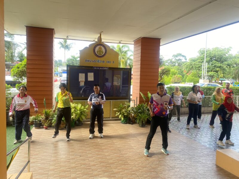 >>>>>>วันที่ 1 ตุลาคม พ.ศ.2568 เวลา 15:30 น. นายตอฮีรน หะยีเลาะแม ผู้อำนวยการสำนักงานเขตพื้นที่การศึกษาประถมศึกษานราธิวาส เขต 3 พร้อมด้วย น.ส.ผาสุขสันต์ ไหมทิพย์ นายไพฑูรย์ ศรีวะสุทธิ์ นายศุภวุฒิ สุภาชาติ นำบุคลากร สพป.นราธิวาส เขต 3 ร่วมออกกำลังกาย เพื่อสุขภาพพลานามัยที่ดี ทุกวันพุธ เป็นเวลา 30 นาที ตามนโยบายขับเคลื่อนการส่งเสริม และพัฒนาการออกกำลังกายและกีฬา เพื่อมวลชนให้เป็นวิถีชีวิต เป็นการเสริมสร้างให้บุคลากรมีสุขภาพพลานามัยที่ดี ทำให้สามารถปฏิบัติภารกิจหน้าที่ราชการได้อย่างมีประสิทธิภาพ