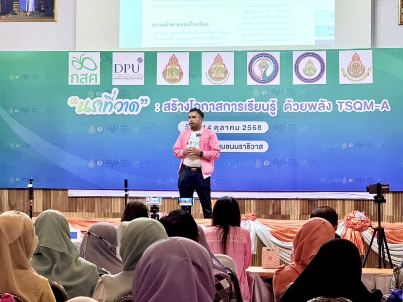 >>>>>>วันที่ 14 ตุลาคม พ.ศ.2568 เวลา 9:00น. นายตอฮีรน หะยีเลาะแม ผู้อำนวยการสำนักงานเขตพื้นที่การศึกษาประถมศึกษานราธิวาส เขต 3 ร่วมพิธีเปิดเวทีการจัดความรู้ การขับเคลื่อนโรงเรียนพัฒนาตนเองเชิงพื้นที่จังหวัดนราธิวาส “นราที่วาด” : สร้างโอกาสการเรียนรู้ ด้วยพลัง TSQM-A เพื่อยกระดับผลสัมฤทธิ์ทางการเรียนและมุ่งเน้นให้ผู้เรียนมีผลลัพธ์การเรียนที่ดีขึ้น นักเรียนได้รับการศึกษาอย่างเท่าเทียม ณ หอประชุมกระจูด วิทยาลัยชุมชนจังหวัดนราธิวาส