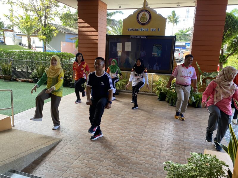 >>>>>>วันที่ 15 ตุลาคม พ.ศ.2568 เวลา 15:30 น. นายตอฮีรน หะยีเลาะแม ผู้อำนวยการสำนักงานเขตพื้นที่การศึกษาประถมศึกษานราธิวาส เขต 3 นำบุคลากร สพป.นราธิวาส เขต 3 นำบุคลากร สพป.นรษธิวาส เขต 3 ออกกำลังกาย เพื่อสุขภาพพลานามัยที่ดี ทุกวันพุธ เป็นเวลา 30 นาที ตามนโยบายขับเคลื่อนการส่งเสริม และพัฒนาการออกกำลังกายและกีฬา เพื่อมวลชนให้เป็นวิถีชีวิต เป็นการเสริมสร้างให้บุคลากรมีสุขภาพพลานามัยที่ดี ทำให้สามารถปฏิบัติภารกิจหน้าที่ราชการได้อย่างมีประสิทธิภาพ