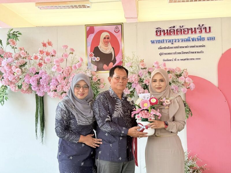 >>>>>>วันที่ 10 พฤศจิกายน พ.ศ.2568 เวลา 9:00น. นายตอฮีรน หะยีเลาะแม ผู้อำนวยการสำนักงานเขตพื้นที่การศึกษาประถมศึกษานราธิวาส เขต 3 ร่วมและความยินดี และกล่าวต้อนรับ น.ส.กูวรรณโซเฟีย ลอ เนื่องในโอกาสย้ายมาดำรงตำแหน่ง ผู้อำนวยการโรงเรียนบ้านเขาแก้ว