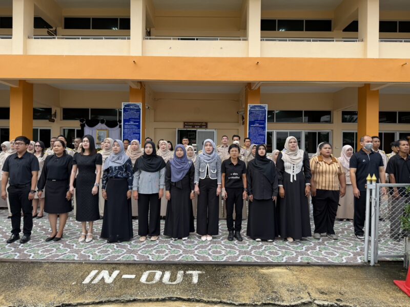 >>>>>>วันที่ 17 พฤศจิกายน พ.ศ.2568 เวลา 8:00น. นายตอฮีรน หะยีเลาะแม ผู้อำนวยการสำนักงานเขตพื้นที่การศึกษาประถมศึกษานราธิวาส เขต 3 มอบหมายให้ นายศุภวุฒิ สุภาชาติ น.ส.ผาสุขสันต์ ไหมทิพย์ นายนิติธร ชาวสูนย์ บุคลากร สพป.นราธิวาส เขต 3 ร่วมเข้าแถวเคารพธงชาติ เพื่อแสดงความจงรักภักดี ต่อชาติ ศาสนา และพระมหากษัตริย์ พร้อมกล่าวดุอาอฺ และสวดมนต์ ก่อนกล่าวคำปฏิญาณตน เพื่อเป็นข้าราชการที่ดีและพลังของแผ่นดิน และคำปฏิญาณเขตพื้นที่การศึกษาคุณธรรมและเขตสุจริต ในการนี้ รอง ผอ.