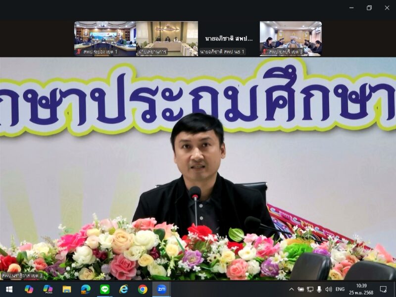 >>>>>>วันที่ 25 พฤศจิกายน พ.ศ.2568 เวลา 9:00น. นายตอฮีรน หะยีเลาะแม ผู้อำนวยการสำนักงานเขตพื้นที่การศึกษาประถมศึกษานราธิวาส เขต 3 มอบหมายให้ นายศุภวุฒิ สุภาชาติ รอง ผอ.สพป.นราธิวาส เขต 3 รักษาราชการแทน ผอ.สพป.นราธิวาส เขต 3 พร้อมด้วย นายไพฑูรย์ ศรีวะสุทธิ์ นายนิติธร ชาวสูนย์ รอง ผอ.สพป.นราธิวาส เขต 3 ร่วมประชุมผู้อำนวยการสำนักงานเขตพื้นที่การศึกษา ทั่วประเทศ ผ่านระบบ Video Conference ครั้งที่ 7/2568 ณ ห้องประชุมจะแนะ สพป.นราธิวาส เขต 3 เพื่อรับแจ้งข้อราชการสำคัญแก่ผู้อำนวยการสำนักงานเขตพื้นที่การศึกษา ทั่วประเทศ พร้อมทั้งรายงานสถานการณ์น้ำท่วมในพื้นที่่ภาคใต้