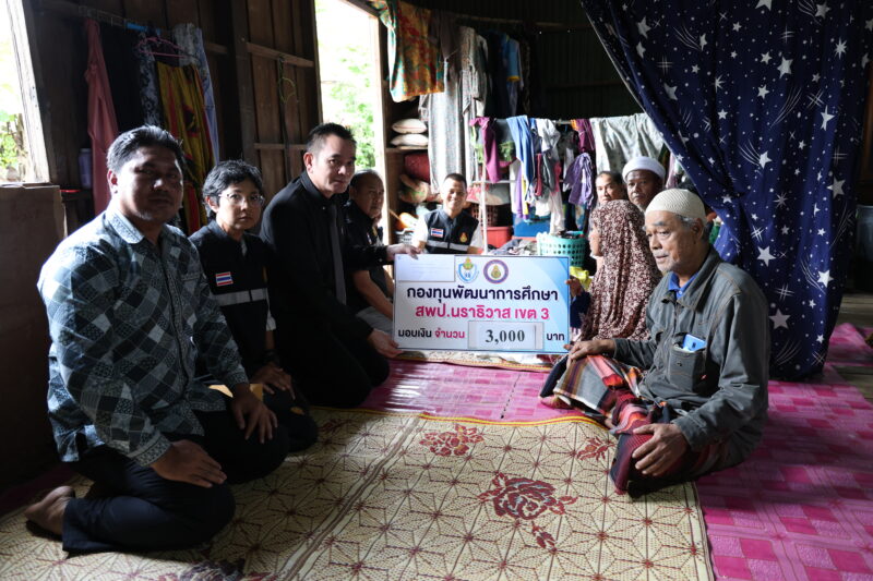 >>>>>>วันที่ 25 พฤศจิกายน พ.ศ.2568 เวลา 14:30น. นายตอฮีรน หะยีเลาะแม ผู้อำนวยการสำนักงานเขตพื้นที่การศึกษาประถมศึกษานราธิวาส เขต 3 พร้อมด้วยนายนิติธร ชาวสูนย์ รอง ผอ.สพป.นราธิวาส เขต 3 และคณะศูนย์บริหารความสุขและความปลอดภัย สพป.นราธิวาส เขต 3 ลงพื้นที่เยี่ยมให้กำลังใจครอบครัวนักเรียนโรงเรียนบ้านนิบงที่ประสบอุบัติจนน้ำเสียชีวิต ทั้งนี้ได้มอบทุนช่วยเหลือเยียวยาเบื้องต้นจากกองทุนพัฒนาการศึกษา สพป.นราธิวาส เขต 3 เป็นจำนวนเงินทั้งสิ้น 3,000 บาท