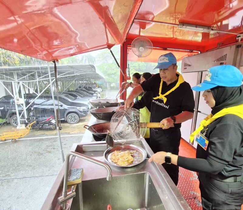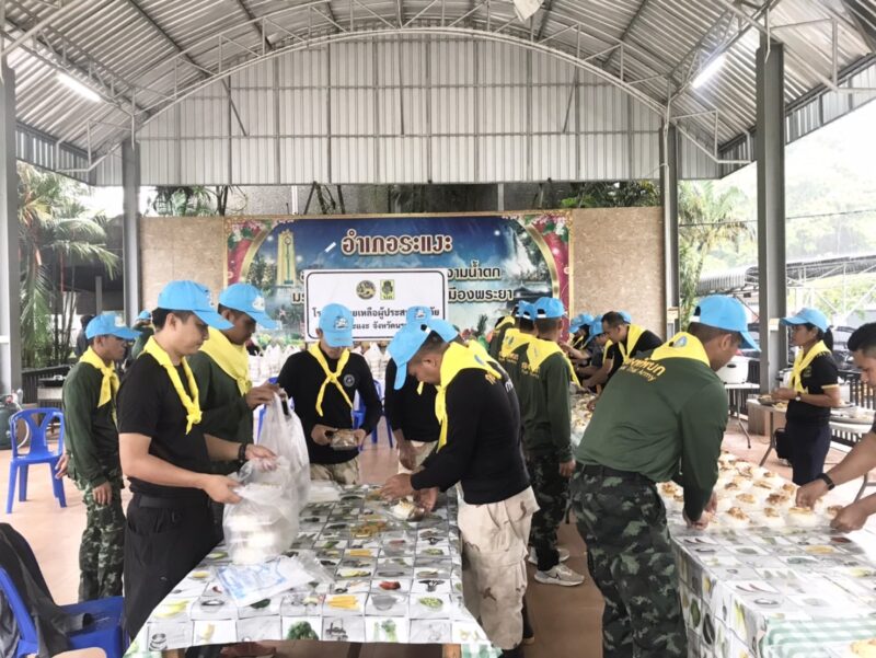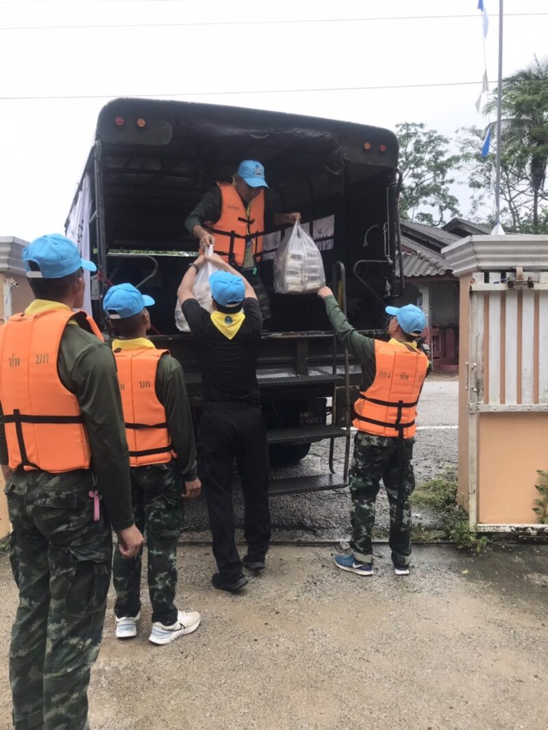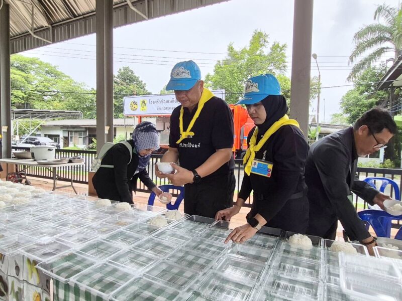 ร่วมกิจกรรมจิตอาสา ประกอบอาหารปรุงสุกพร้อมทาน และน้ำดี่ม เพื่อแจกจ่ายให้แก่ผู้ประสบภัยในพื้นที่อำเภอระแงะ