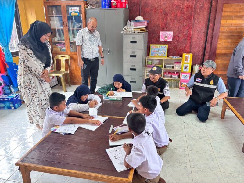 >>>>>>วันที่ 27 พฤศจิกายน พ.ศ. 2568 นายตอฮีรน หะยีเลาะแม ผู้อำนวยการสำนักงานเขตพื้นที่การศึกษาประถมศึกษานราธิวาส เขต 3 พร้อมด้วย ผู้บริหารสถานศึกษาในสังกัด และเจ้าหน้าที่ สพป.นราธิวาส เขต 3 ลงพื้นที่เยี่ยมและให้กำลังใจผู้บริหาร คณะครู และนักเรียนในการจัดการเรียนการสอนในสถานการณ์น้ำท่วม ณ โรงเรียนบ้านกูจิงลือปะ และโรงเรียนบ้ายลูโบ๊ะบาตู ทั้งนี้ ผู้อำนวยการฯ ได้มอบถุงยังชีพเพื่อบรรเทาความเดือดร้อนในเบื้องต้น พร้อมเน้นย้ำให้ผู้บริหารและคณะครูช่วยกันดูแลความปลอดภัยของนักเรียน และปรับเปลี่ยนการจัดการเรียนการสอนให้เหมาะสมกับสถานการณ์น้ำท่วม และเป็นกำลังใจให้ผู้บริหาร คณะครู และนักเรียนผ่านพ้นวิกฤติน้ำท่วมครั้งนี้ไปด้วยกัน