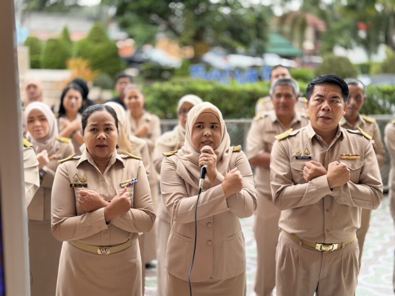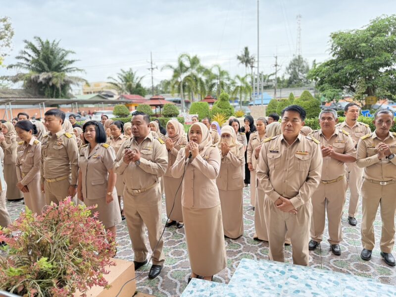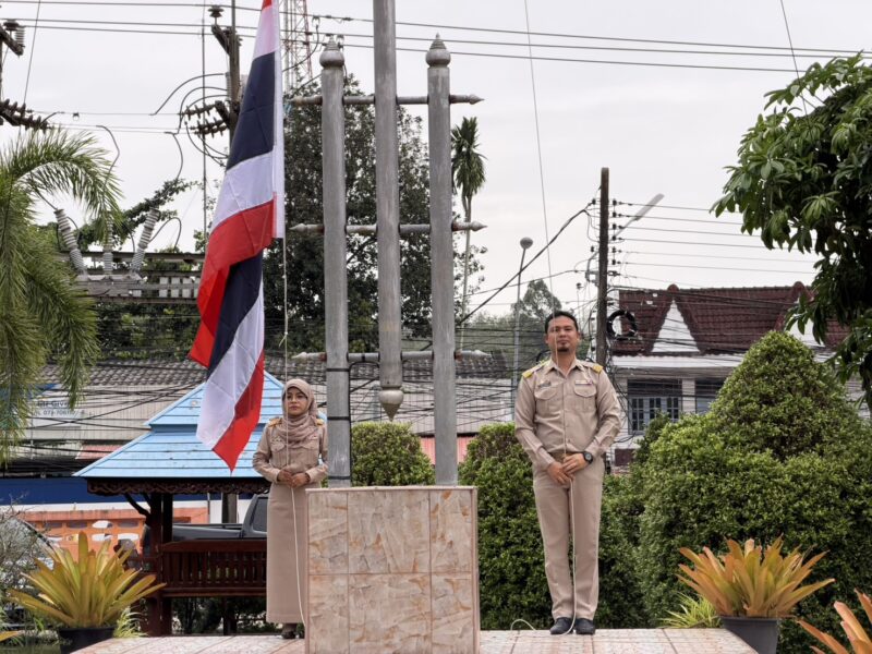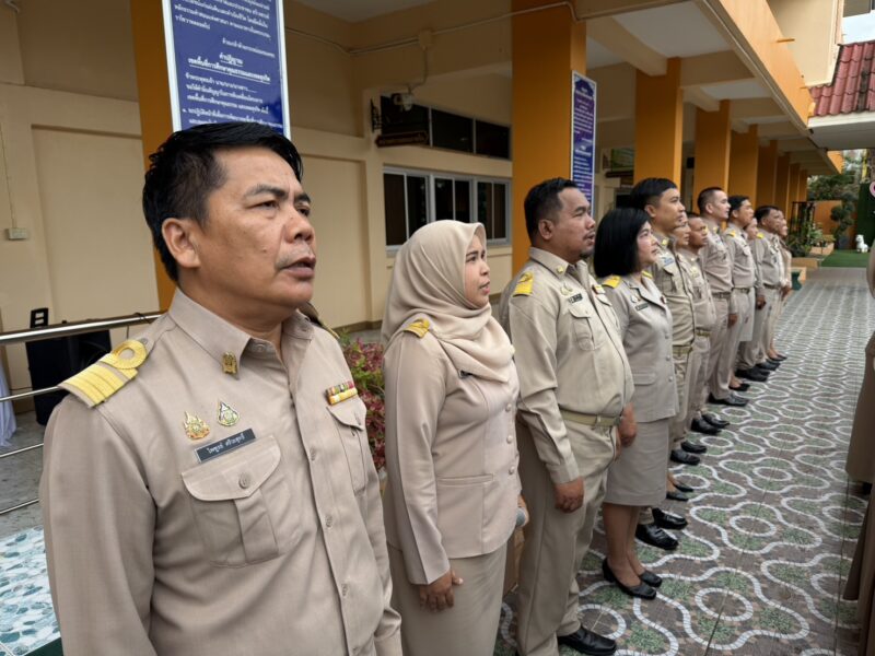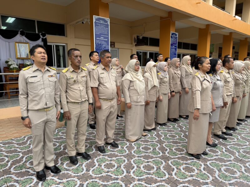 >>>>>>วันที่ 8 ธันวาคม พ.ศ.2568 เวลา 8:00น. นายตอฮีรน หะยีเลาะแม ผู้อำนวยการสำนักงานเขตพื้นที่การศึกษาประถมศึกษานราธิวาส เขต 3 พร้อมด้วย นายศุภวุฒิ สุภาชาติ นายไพฑูรย์ ศรีวะสุทธิ์ นายนิติธร ชาวสูนย์ น.ส.ผาสุขสันต์ ไหมทิพย์ และบุคลากร สพป.นราธิวาส เขต 3 ร่วมเข้าแถวเคารพธงชาติ เพื่อแสดงความจงรักภักดี ต่อชาติ ศาสนา และพระมหากษัตริย์ พร้อมกล่าวดุอาอฺ และสวดมนต์ ก่อนกล่าวคำปฏิญาณตน เพื่อเป็นข้าราชการที่ดีและพลังของแผ่นดิน และคำปฏิญาณเขตพื้นที่การศึกษาคุณธรรมและเขตสุจริต ในการนี้ นายตอฮีรน หะยีเลาะแม ผอ. สพป.นราธิวาส เขต 3 ได้กล่าวพบปะและแจ้งข้อราชการให้บุคลากรทราบ