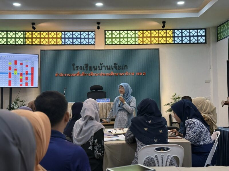 >>>>>>วันที่ 23 ธันวาคม พ.ศ.2568 เวลา 09:00 น. นายตอฮีรน หะยีเลาะแม ผู้อำนวยการสำนักงานเขตพื้นที่การศึกษาประถมศึกษานราธิวาส เขต 3 เป็นประธานในพิธีเปิดโครงการอบรมเชิงปฏิบัติการการวิเคราะห์ข้อสอบและการจัดทำแผนพัฒนายกระดับผลสัมฤทธิ์การทดสอบระดับชาติ (O-NET) ปีการศึกษา 2568 ของศูนย์เครือข่ายสถานศึกษาตำบลบาโงสะโต โดยมี นางรูซรีนา ปาแนแจกะ ศึกษานิเทศก์ ชำนาญการพิเศษ สพป.นราธิวาส เขต 3 เป็นวิทยากรให้ความรู้ในครั้งนี้ ณ ห้องประชุมโรงเรียนบ้านเจ๊ะเก