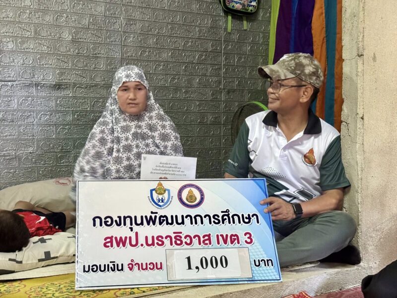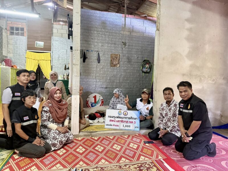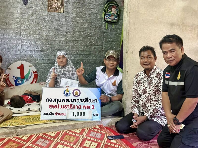 >>>>>>วันที่ 24 ธันวาคม พ.ศ.2568 เวลา 14:00 น. นายตอฮีรน หะยีเลาะแม ผู้อำนวยการสำนักงานเขตพื้นที่การศึกษาประถมศึกษานราธิวาส เขต 3 พร้อมด้วยคณะศูนย์บริหารความสุขและความปลอดภัย สพป.นราธิวาส เขต 3 ผู้บริหารโรงเรียน และคณะครู ลงพื้นที่เยี่ยมให้กำลังใจนักเรียนโรงเรียนบ้านบูเก๊ะตาโมง มิตรภาพที่ 128 ที่ป่วยด้วยโรคประจำตัวและนักเรียนโรงเรียนบ้านบาโงดุดุงที่ประสบอุบัติเหตุ ทั้งนี้ได้มอบทุนช่วยเหลือนักเรียนจากกองทุนพัฒนาการศึกษา สพป.นราธิวาส เขต 3 รวมเป็นจำนวนเงินทั้งสิ้น 2,000 บาท
