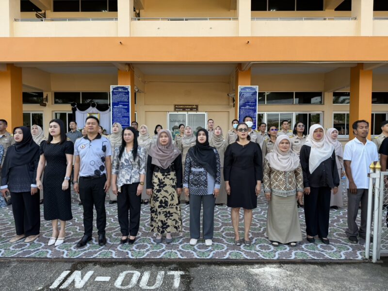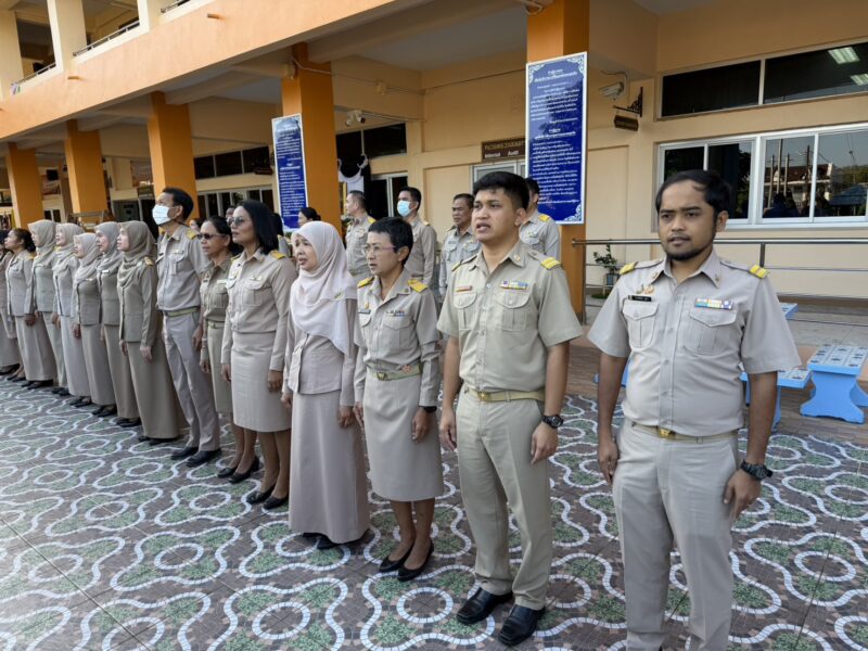 >>>>>>วันที่ 12 มกราคม พ.ศ.2568 เวลา 8:00น. นายตอฮีรน หะยีเลาะแม ผู้อำนวยการสำนักงานเขตพื้นที่การศึกษาประถมศึกษานราธิวาส เขต 3 มอบหมายให้ น.ส.ผาสุขสันต์ ไหมทิพย์ นายนิติธร ชาวสูนย์ นายวุฒิชัย ไชยสุข และบุคลากร สพป.นราธิวาส เขต 3 ร่วมเข้าแถวเคารพธงชาติ เพื่อแสดงความจงรักภักดี ต่อชาติ ศาสนา และพระมหากษัตริย์ พร้อมกล่าวดุอาอฺ และสวดมนต์ ก่อนกล่าวคำปฏิญาณตน เพื่อเป็นข้าราชการที่ดีและพลังของแผ่นดิน และคำปฏิญาณเขตพื้นที่การศึกษาคุณธรรมและเขตสุจริต ในการนี้ รอง ผอ. สพป. นราธิวาส เขต 3 ได้กล่าวพบปะและแจ้งข้อราชการให้บุคลากรทราบ