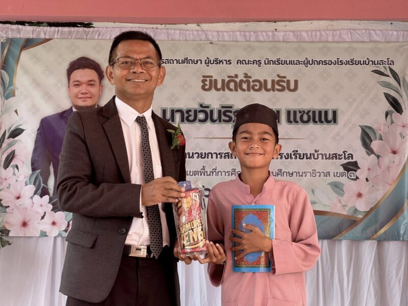 >>>>>>วันที่ื 13 มกราคม พ.ศ.2569 เวลา 10:30 น. นายตอฮีรน หะยีเลาะแม ผู้อำนวยการสำนักงานเขตพื้นที่การศึกษาประถมศึกษานราธิวาส เขต 3 เป็นประธานในพิธีต้อนรับและร่วมแสดงความยินดีกับ นายวันริฎวาน แซแน ในโอกาสรับตำแหน่งรองผู้อำนวยการโรงเรียนบ้านสะโล อำเภอระแงะ จังหวัดนราธิวาส ทั้งนี้ ผู้บริหาร คณะครู และนักเรียนโรงเรียนบ้านบาตู มิตรภาพที่ 66 สังกัดสำนักงานเขตพื้นที่การศึกษาประถมศึกษานราธิวาส เขต 1 และผู้บริหารสถานศึกษา สังกัดสำนักงานเขตพื้นที่การศึกษาประถมศึกษานราธิวาส เขต 3 ร่วมแสดงความยินดีในโอกาสดังกล่าว