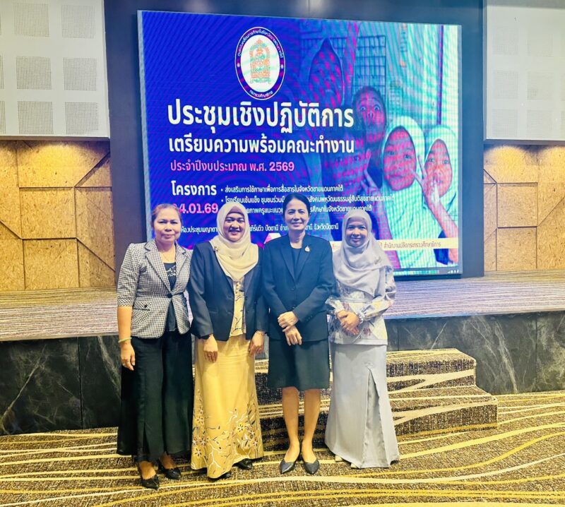 >>>>>วันที่ 14 มกราคม พ.ศ.2569 เวลา 9:00 น. นายตอฮีรน หะยีเลาะแม ผู้อำนวยการสำนักงานเขตพื้นที่การศึกษาประถมศึกษานราธิวาส เขต 3 มอบหมายให้ น.ส.ผาสุขสันต์ ไหมทิพย์ รอง ผอ.สพป.นราธิวาส เขต 3 พร้อมด้วยศึกษานิเทศก์ ร่วมประชุมเชิงปฏิบัติการเตรียมความพร้อมคณะทำงานโครงการส่งเสริมการใช้ภาษาเพื่อการสื่อสารในจังหวัดชายแดนภาคใต้ โครงการโรงเรียนเข้มแข็ง ชุมชนร่วมมือเสริมสร้างสังคมพหุวัฒนธรรมสู่สันติสุขชายแดนภาคใต้และโครงการพัฒนาศักยภาพครูแนะแนวเพื่อส่งเสริมการศึกษาในจังหวัดชายแดนภาคใต้ ประจำปีงบประมาณ พ.ศ.2569 ณ ห้องประชุมพญาตานี 1 โรงแรมเซาท์เทิร์นวิว ปัตตานี อำเภอเมืองปัตตานี จังหวัดปัตตานี
