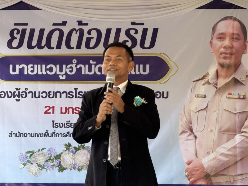 ประธานต้อนรับ นายแวมูฮำมัด กาแม รอง ผอ.รร.บ้านน้ำหอม 21 มกราคม 2569งานประชาสัมพันธ์กิจกรรม วันที่ 21 มกราคม พ.ศ.2569 เวลา 11:00 น. นายตอฮีรน หะยีเลาะแม ผู้อำนวยการสำนักงานเขตพื้นที่การศึกษาประถมศึกษานราธิวาส เขต 3 ประธานต้อนรับ นายแวมูฮำมัด กาแม เนื่องในโอกาสเข้ารับตำแหน่ง รองผู้อำนวยการโรงเรียนบ้านน้ำหอม อ.จะแนะ จ.นราธิวาส Views: 7FacebookFacebookXXLINELine