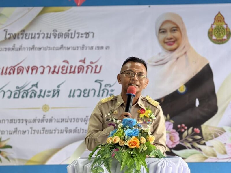 >>>>>>วันที่ 26 มกราคม พ.ศ. 2569 เวลา 09:30 น. นายตอฮีรน หะยีเลาะแม ผู้อำนวยการสำนักงานเขตพื้นที่การศึกษาประถมศึกษานราธิวาส เขต 3 เป็นประธานในพิธีต้อนรับ นางสาวอัสลีมะห์ แวยาโก๊ะ เนื่องในโอกาสเดินทางมารับตำแหน่งรองผู้อำนวยการโรงเรียนร่วมจิตต์ประชา อำเภอจะแนะ จังหวัดนราธิวาส โดยมีผู้บริหารสถานศึกษา ข้าราชการครู บุคลากรทางการศึกษา และผู้ปกครองนักเรียน ร่วมแสดงความยินดี บรรยากาศเป็นไปด้วยความเรียบง่ายและอบอุ่น