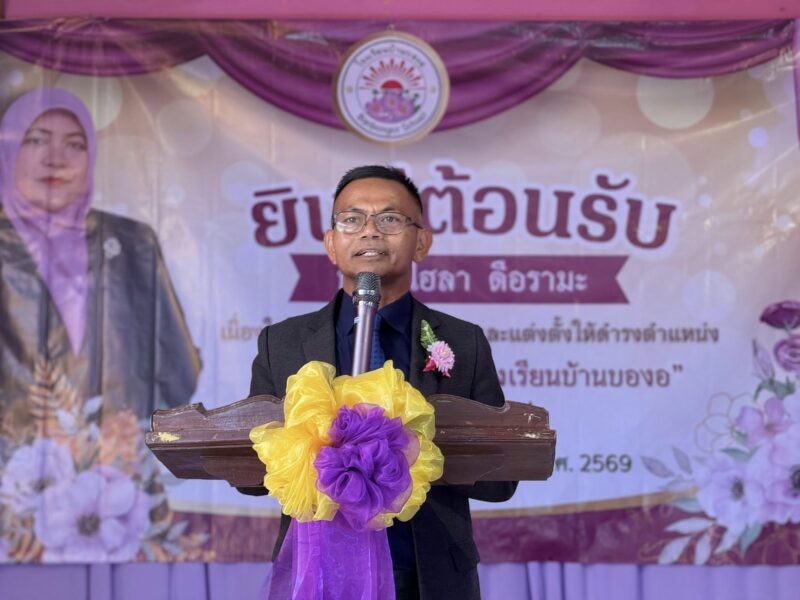 >>>>>>วันที่ 27 มกราคม พ.ศ. 2569 เวลา 13:30 น. นายตอฮีรน หะยีเลาะแม ผู้อำนวยการสำนักงานเขตพื้นที่การศึกษาประถมศึกษานราธิวาส เขต 3 เป็นประธานในพิธีต้อนรับ นางซูไฮลา ดือรามะ เนื่องในโอกาสเดินทางมารับตำแหน่งรองผู้อำนวยการโรงเรียนบ้านบองอ อำเภอระแงะ จังหวัดนราธิวาส โดยมีผู้บริหารสถานศึกษา ข้าราชการครู บุคลากรทางการศึกษา และผู้ปกครองนักเรียน ร่วมแสดงความยินดี บรรยากาศเป็นไปด้วยความเรียบง่ายและอบอุ่น