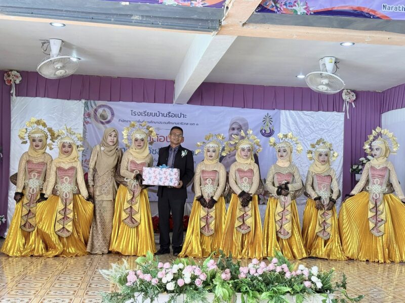 วันที่ 29 สิงหาคม พ.ศ.2568 เวลา 10:00 น. นายตอฮีรน หะยีเลาะแม ผู้อำนวยการสำนักงานเขตพื้นที่การศึกษาประถมศึกษานราธิวาส เขต 3 เป็นประธานในพิธีเปิดงานต้อนรับ นางสาวอัซลีนา สาและ รองผู้อำนวยการโรงเรียนบ้านรือเปาะ อ.จะแนะ จ.นราธิวาส