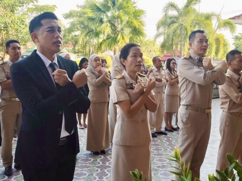 วันที่ 9 กุมภาพันธ์ พ.ศ.2569 เวลา 8:00น. พร้อมด้วย นายนิติธร ชาวสูนย์ น.ส.ผาสุขสันต์ ไหมทิพย์ นายวุฒิชัย ไชยสุข และบุคลากร สพป.นราธิวาส เขต 3 ร่วมเข้าแถวเคารพธงชาติ เพื่อแสดงความจงรักภักดี ต่อชาติ ศาสนา และพระมหากษัตริย์ พร้อมกล่าวดุอาอฺ และสวดมนต์ ก่อนกล่าวคำปฏิญาณตน เพื่อเป็นข้าราชการที่ดีและพลังของแผ่นดิน และคำปฏิญาณเขตพื้นที่การศึกษาคุณธรรมและเขตสุจริต ในการนี้ นายตอฮีรน หะยีเลาะแม ผอ. สพป.นราธิวาส เขต 3 ได้กล่าวพบปะและแจ้งข้อราชการให้บุคลากรทราบ