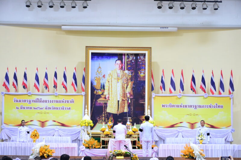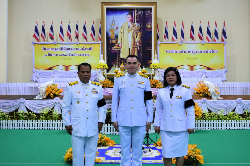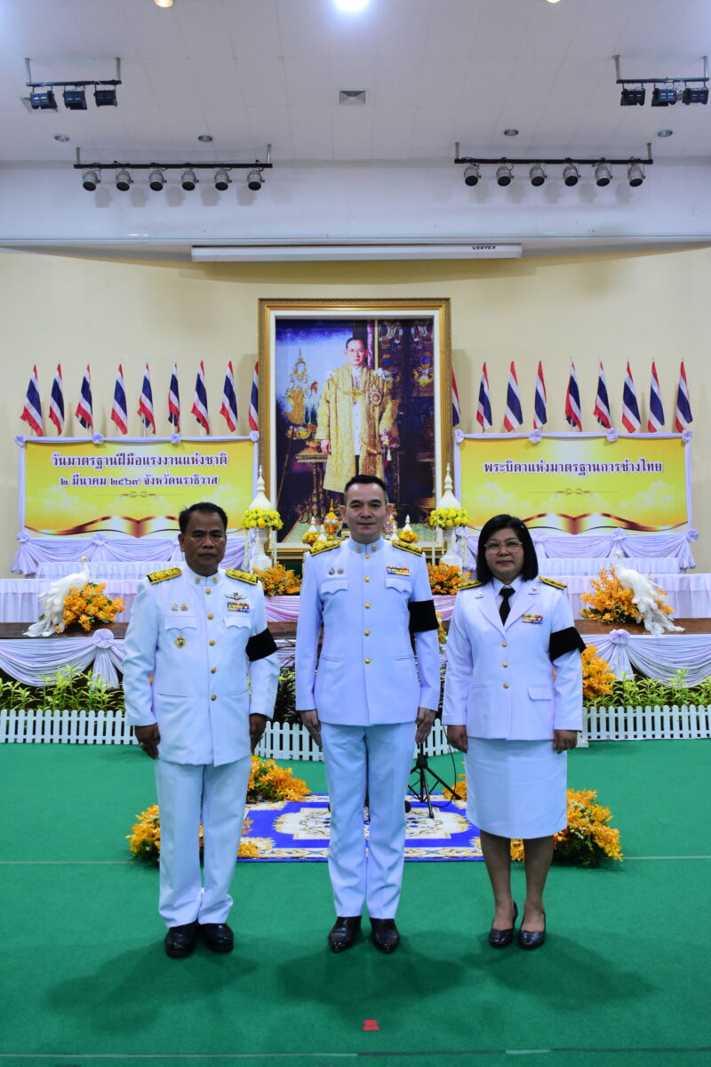 วันที่ 2 มีนาคม พ.ศ.2569 เวลา 9:00น. นายตอฮีรน หะยีเลาะแม ผู้อำนวยการสำนักงานเขตพื้นที่การศึกษาประถมศึกษานราธิวาส เขต 3 มอบหมายให้ นายนิติธร ชาวสูนย์ รอง ผอ.สพป.นราธิวาส เขต 3 พร้อมด้วยนายสมเกียรติ หนูแก้ว ผอ.กลุ่มส่งเสริมการจัดการศึกษา และนางชฎารัตน์ หนูแก้ว ผอ.กลุ่มบริหารงานบุคคล ร่วมพิธีวางพานพุ่มถวายราชสักการะพระบาทสมเด็จพระบรมชนกาธิเบศร มหาภูมิพลอดุลยเดชมหาราช บรมนาถบพิตร ในฐานะ “พระบิดาแห่งมาตรฐานการช่างไทย” เนื่องในวันมาตรฐานฝีมือแรงงานแห่งชาติ เพื่อเทิดพระเกียรติและน้อมรำลึกถึงพระมหากรุณาธิคุณที่ทรงให้ความสำคัญกับการพัฒนาฝีมือแรงงานไทย ณ หอประชุมเฉลิมพระเกียรติ ศาลากลางแห่งที่ 1 จ.นราธิวาส