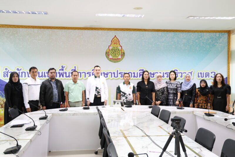 วันที่ 19 มีนาคม พ.ศ.2569 เวลา 08.00 น. นายตอฮีรน หะยีเลาะแม ผอ.สพป.นราธิวาส เขต 3 พร้อมด้วยนายนิติธร ชาวสูนย์ รอง ผอ.สพป.นราธิวาส เขต 3 ผู้อำนวยการกลุ่ม/หน่วย และบุคลากรที่เกี่ยวข้อง ร่วมรับชมรายการ “พฤหัสเช้า ข่าว สพฐ.” ครั้งที่ 11/2569 เพื่อรับทราบนโยบาย ข้อสั่งการ และแนวทางการขับเคลื่อนการจัดการศึกษาตามนโยบายสำคัญของกระทรวงศึกษาธิการ จากนั้นได้ประชุมกำกับ ติดตาม ความก้าวหน้าการดำเนินงานตามนโยบายและโครงการกิจกรรมสำนักงานเขตพื้นที่การศึกษา พร้อมรับฟังการรายงานกรอบภาระงานของแต่ละกลุ่ม /หน่วย การแก้ไขปัญหาอุปสรรคในการปฏิบัติงาน ตลอดจนการเน้นย้ำให้ทุกกลุ่มงานบูรณาการการทำงานร่วมกัน เพื่อยกระดับคุณภาพการศึกษา และสนับสนุนการจัดการเรียนรู้ให้เกิดประโยชน์สูงสุดแก่ผู้เรียนในพื้นที่รับผิดชอบ บรรลุตามนโยบาย จุดเน้น กระทรวงศึกษาธิการ สำนักงานคณะกรรมการการศึกษาขั้นพื้นฐาน (สพฐ.) และสำนักงานเขตพื้นที่การศึกษา ณ ห้องประชุมจะแนะ สพป.นราธิวาส เขต 3