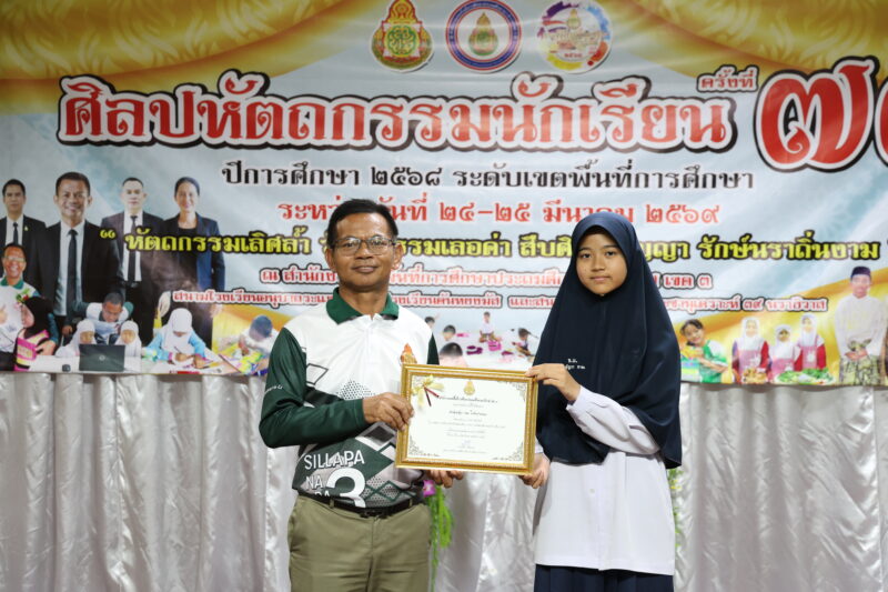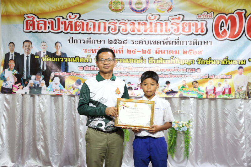 วันที่ 24 มีนาคม 2569 เวลา 13:30 น. นายตอฮีรน หะยีเลาะแม ผู้อำนวยการเขตพื้นที่การศึกษาประถมศึกษานราธิวาส เขต 3 เป็นประธานเปิดงานศิลปหัตถกรรมนักเรียน ครั้งที่ 73 ปีการศึกษา 2568 โดยมีนายวุฒิชัย ไชยสุข รอง ผอ.สพป.นราธิวาส เขต 3 กล่าวรายงานถึงวัตถุประสงค์การจัดงาน ณ ห้องประชุมระแงะ สพป.นราธิวาส เขต 3 ทั้งนี้เพื่อมุ่งเน้นที่จะส่งเสริมกิจกรรมการแข่งขันศิลปะและหัตถกรรม ซึ่งเป็นแนวทางการสร้างอาชีพ ตามพระราชปณิธานของล้นเกล้ารัชกาลที่ 6 และเปิดโอกาสให้นักเรียนได้แสดงออกถึงความสามารถด้านวิชาชีพ เพิ่มศักยภาพผู้เรียนและความสามารถในการแข่งขันบนเวทีนานาชาติได้เต็มศักยภาพ และมีคุณลักษณะอันพึงประสงค์ อีกทั้งยังเป็นการสร้างทักษะด้านอาชีพที่ดีให้กับนักเรียนต่อไป ในการนี้นายตอฮีรน หะยีเลาะแม ผอ.สพป.นราธิวาส เขต 3 ได้มอบเกียรติบัตรให้กับนักเรียนที่มีคะแนน O-NET 100 คะแนนเต็ม