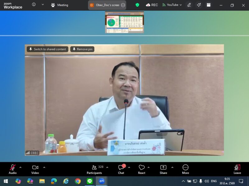 วันที่ 30 มีนาคม พ.ศ.2569 เวลา 9:30น. นายวุฒิชัย ไชยสุข รอง ผอ.สพป.นราธิวาส เขต 3 รักษาราชการแทน ผอ.สพป.นราธิวาส เขต 3 พร้อมด้วยผู้อำนวยการกลุ่ม ร่วมประชุมสร้างความเข้าใจการติดตาม ประเมินผล การบริหารและการจัดการศึกษาขั้นพื้นฐาน มาตรูฐานสำนักงานเขตพื้นที่การศึกษา พ.ศ.2568 ประจำปึงบประมาณ พ.ศ.2569 ผ่านระบบ video conference ณ ห้องประชุมจะแนะ สพป.นราธิวาส เขต 3