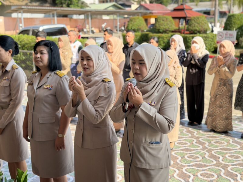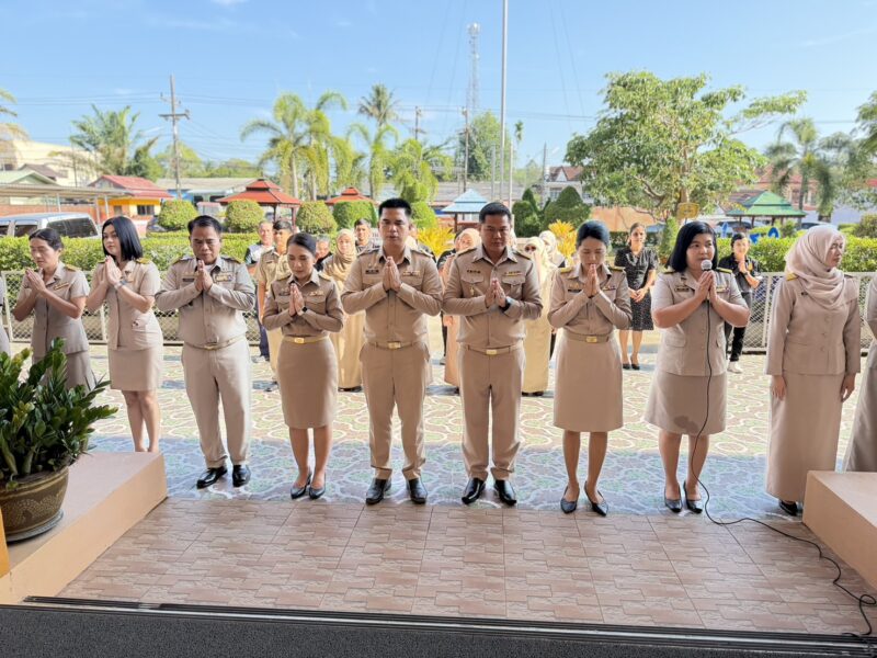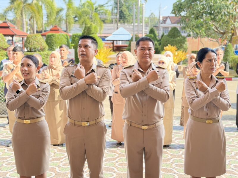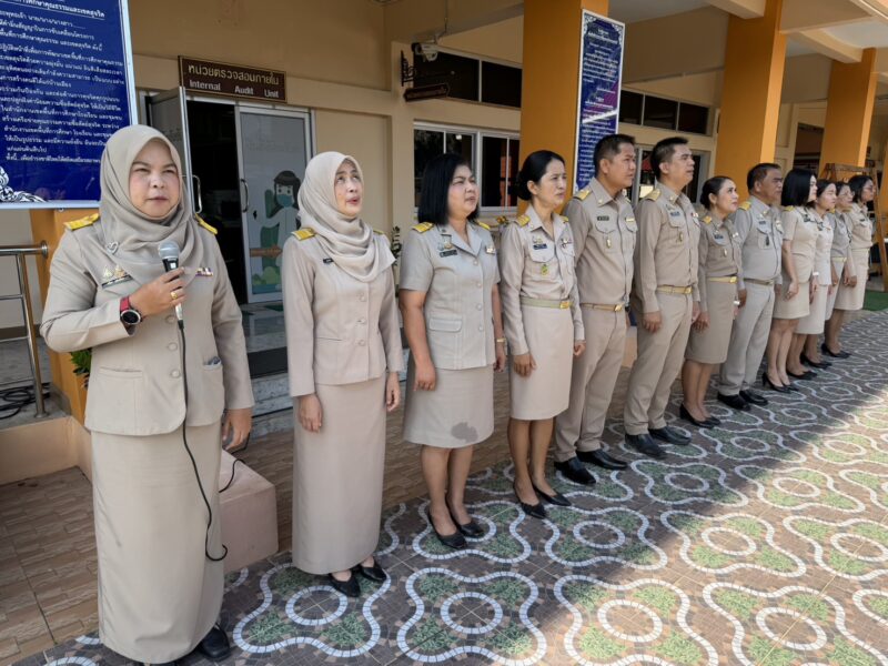 วันที่ 20 เมษายน พ.ศ.2569 เวลา 8:00น. นายตอฮีรน หะยีเลาะแม ผู้อำนวยการสำนักงานเขตพื้นที่การศึกษาประถมศึกษานราธิวาส เขต 3 มอบหมายให้ น.ส.ผาสุขสันต์ ไหมทิพย์ นายวุฒิชัย ไชยสุข นายอัษฎาวุธ ช้อยชด น.ส.ยุวดี พันธ์สุจริต รอง ผอ.สพป.นราธิวาส เขต 3 และบุคลากร สพป.นราธิวาส เขต 3 ร่วมเข้าแถวเคารพธงชาติ เพื่อแสดงความจงรักภักดี ต่อชาติ ศาสนา และพระมหากษัตริย์ พร้อมกล่าวดุอาอฺ และสวดมนต์ ก่อนกล่าวคำปฏิญาณตน เพื่อเป็นข้าราชการที่ดีและพลังของแผ่นดิน และคำปฏิญาณเขตพื้นที่การศึกษาคุณธรรมและเขตสุจริต ในการนี้ น.ส.ผาสุขสันต์ ไหมทิพย์ รอง ผอ. สพป.นราธิวาส เขต 3 ได้กล่าวพบปะ แจ้งข้อราชการให้บุคลากรทราบ และได้แนะนำท่านรองใหม่ทั้ง 2 ท่าน