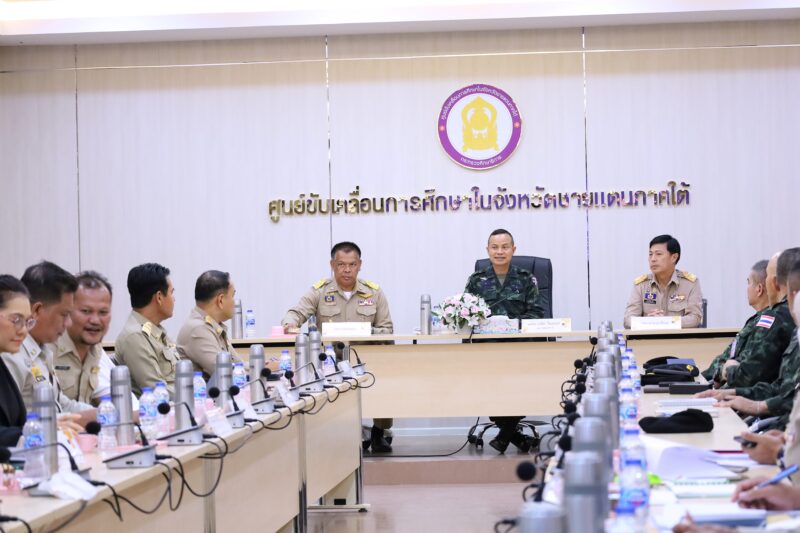 วันที่ 20 เมษายน 2568 เวลา 14.00 น. นายตอฮีรน หะยีเลาะแม ผู้อำนวยการสำนักงานเขตพื้นที่การศึกษาประถมศึกษานราธิวาส เขต 3 เข้าร่วมประชุมมอบนโยบายการศึกษา แนวทางการขับเคลื่อนนโยบายของรัฐมนตรีว่าการกระทรวงศึกษาธิการ และร่วมหารือข้อราชการหน่วยงานการศึกษาในจังหวัดชายแดนภาคใต้ โดยมี พลโท นริศร โพยนอก แม่ทัพภาคที่ 4 / ผู้อำนวยการรักษาความมั่นคงภายในภาค 4 เป็นประธาน ณ ศูนย์ขับเคลื่อนการศึกษาในจังหวัดชายแดนภาคใต้ การประชุมในครั้งนี้มีวัตถุประสงค์เพื่อรับมอบแนวทางปฏิบัติราชการ และบูรณาการการทำงานร่วมกันระหว่างหน่วยงานทางการศึกษาในพื้นที่ โดยมุ่งเน้นการขับเคลื่อนนโยบายสำคัญของรัฐมนตรีว่าการกระทรวงศึกษาธิการ เพื่อยกระดับคุณภาพการเรียนการสอน การลดภาระครูและบุคลากรทางการศึกษา รวมถึงการสร้างโอกาสทางการศึกษาที่เท่าเทียมและปลอดภัยให้แก่เด็กและเยาวชนในพื้นที่จังหวัดชายแดนภาคใต้ ให้สอดคล้องกับบริบทของท้องถิ่นอย่างยั่งยืน ทั้งนี้ ผู้อำนวยการสำนักงานเขตพื้นที่การศึกษาประถมศึกษาประถมศึกษานราธิวาส เขต 3 พร้อมนำนโยบายและแนวทางที่ได้รับจากการประชุมในครั้งนี้ ไปถ่ายทอดและปรับใช้ในการดำเนินงานของ สพป.นราธิวาส เขต 3 เพื่อเพิ่มประสิทธิภาพในการบริหารจัดการศึกษาและพัฒนาศักยภาพผู้เรียนในสังกัดต่อไป